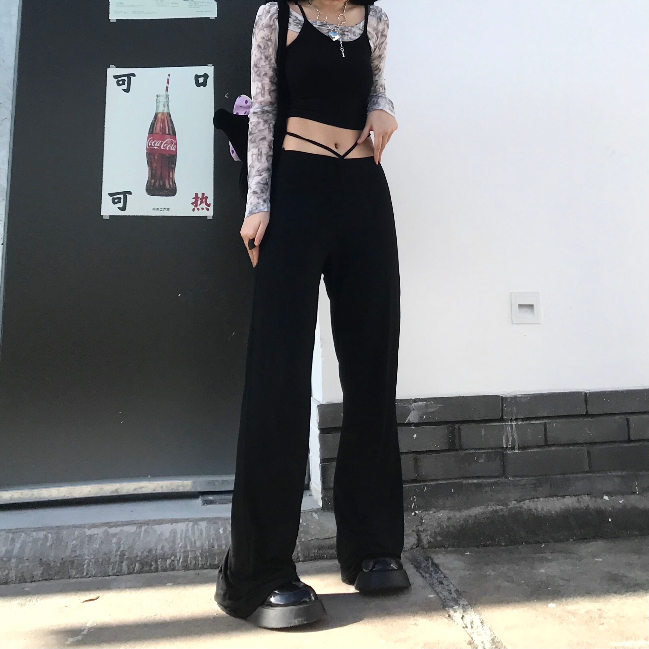 パンツ サマースタンダード薄手ニットルーズブラックカジュアル レトロ 夏物 Brother_is_Style94705806346
