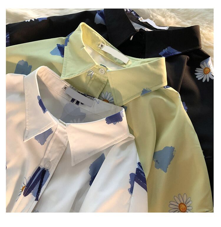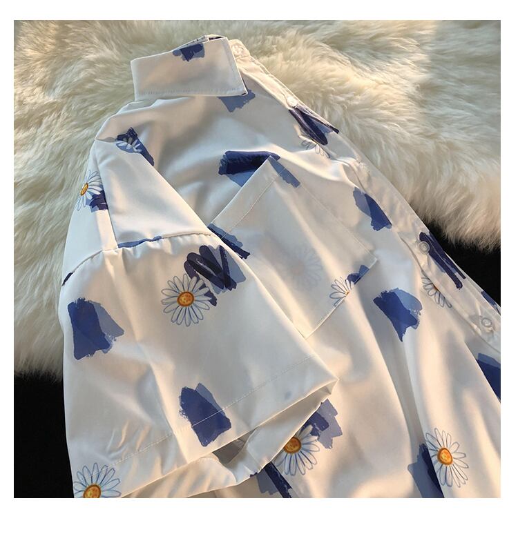 サマースタンダードスタイルFlowerデザイン シャツ ルーズホワイトトップス レトロ 夏物 フラワーデザイン Brother_is_Style5364043936