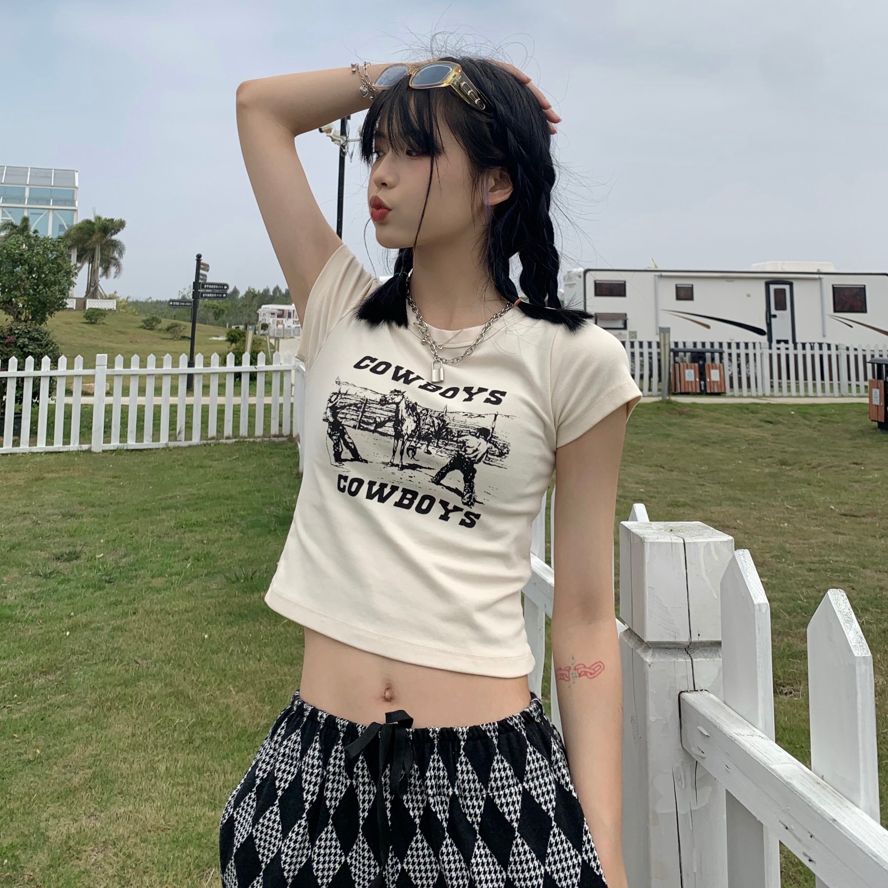 ショートTシャツ レディースサマースタンダードプリントトップス レトロ 夏物 Brother_is_Style68106484987