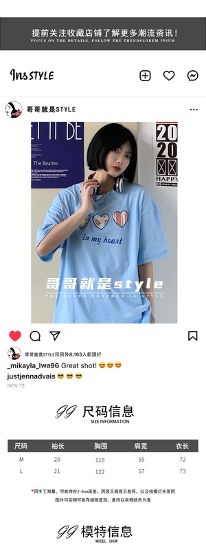 サマースタイル刺繍ルーズトップス Tシャツ 夏物 Brother_is_Style70982532069