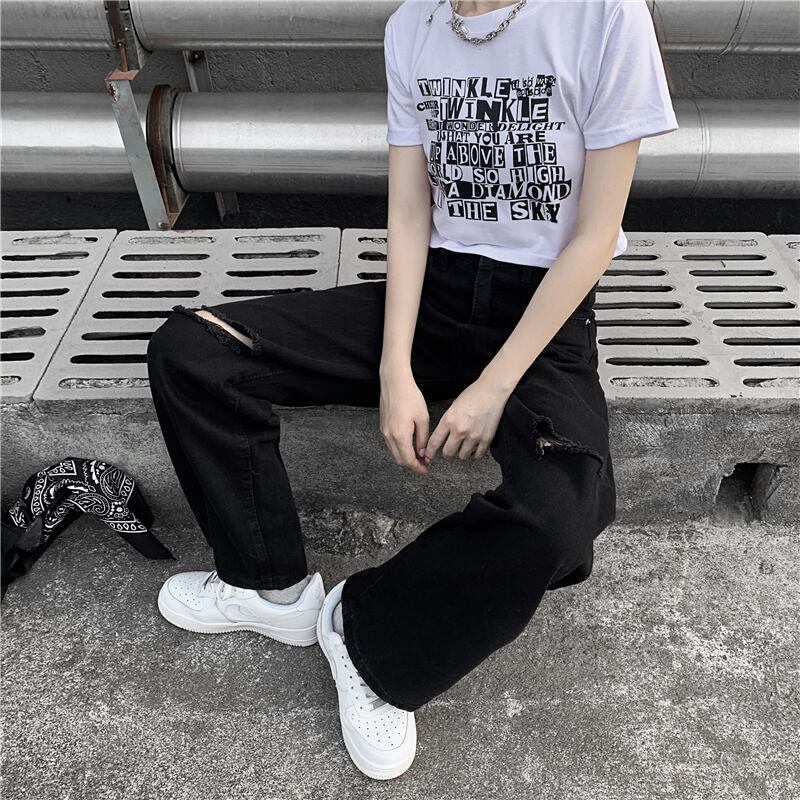 パンツ サマージーンズ ルーズ薄手ブラック ストリート 夏物 Brother_is_Style37130159366