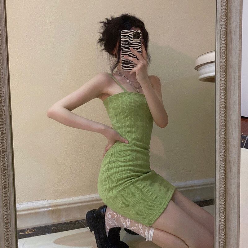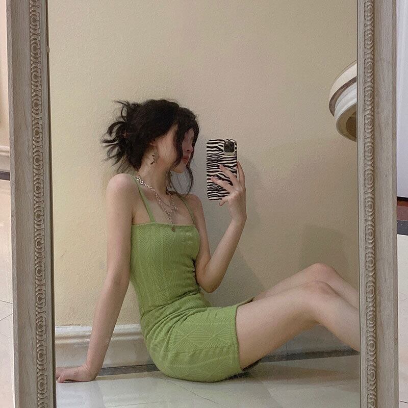 サマーグリーンスカート ウェストドレス ニットショートシャツ 夏物 Brother_is_Style89168136736