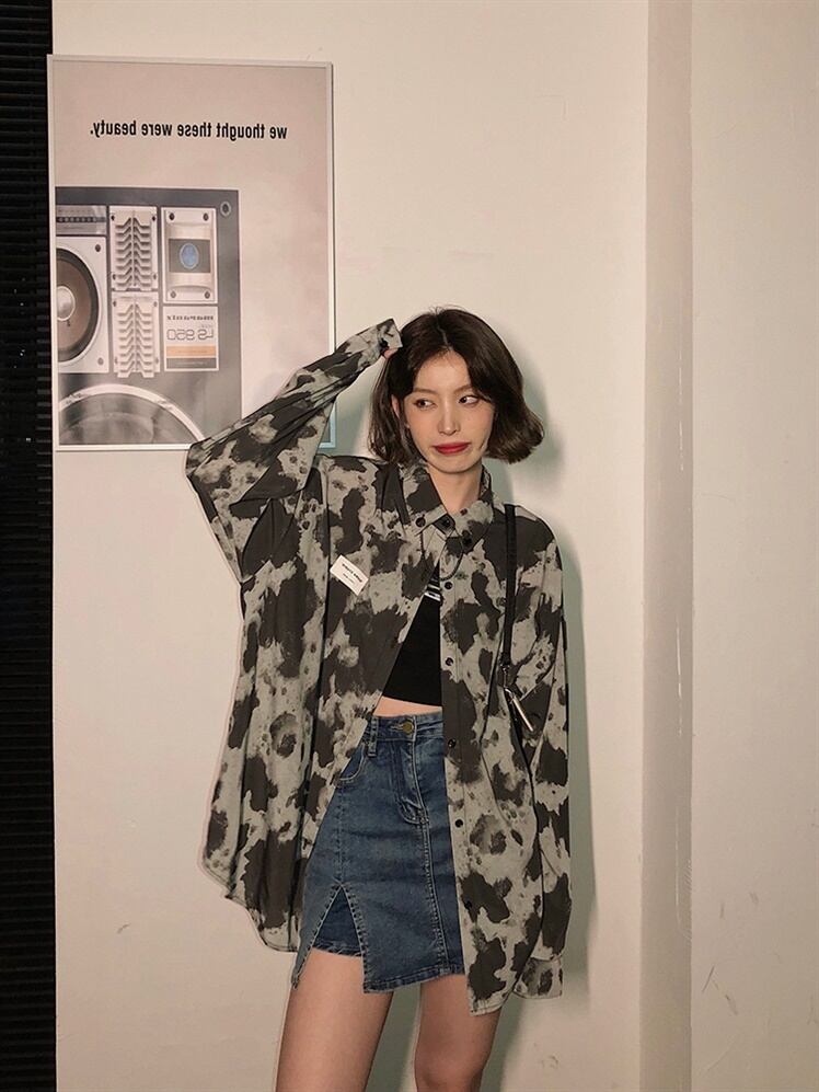 サマーグレーシャツ ルーズスタンダード薄手ブラウス スタイルレディース レトロ 夏物 Brother_is_Style45907288205