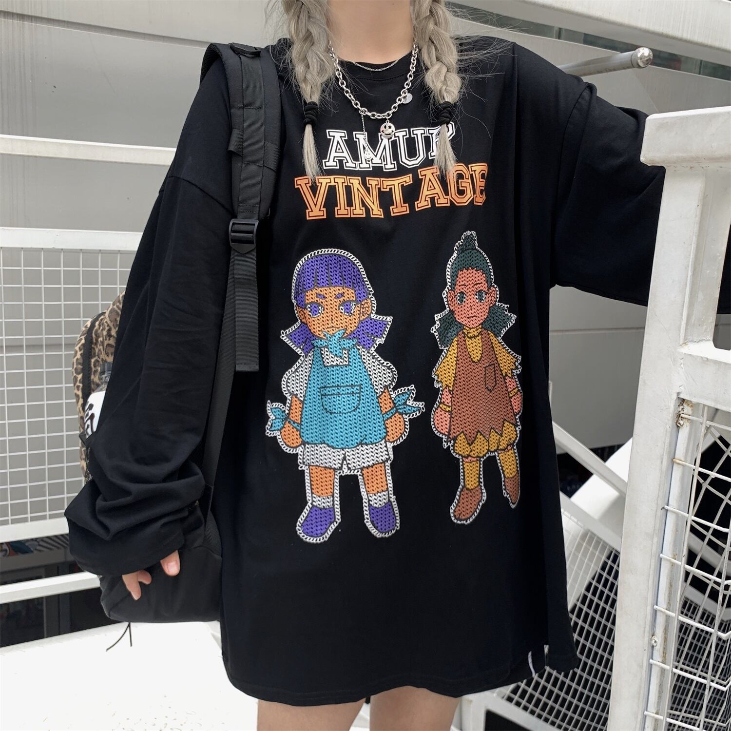 サマートップス ルーズブラックTシャツ ロング コットン ストリート 夏物 ピュア ヨーロピアン Brother_is_Style36887354382