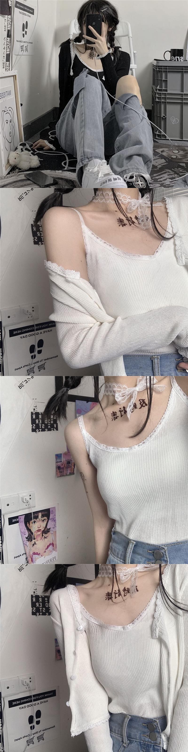 サマーレースニットジャケット 夏物 ステッチ Brother_is_Style20749897124