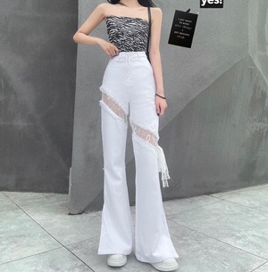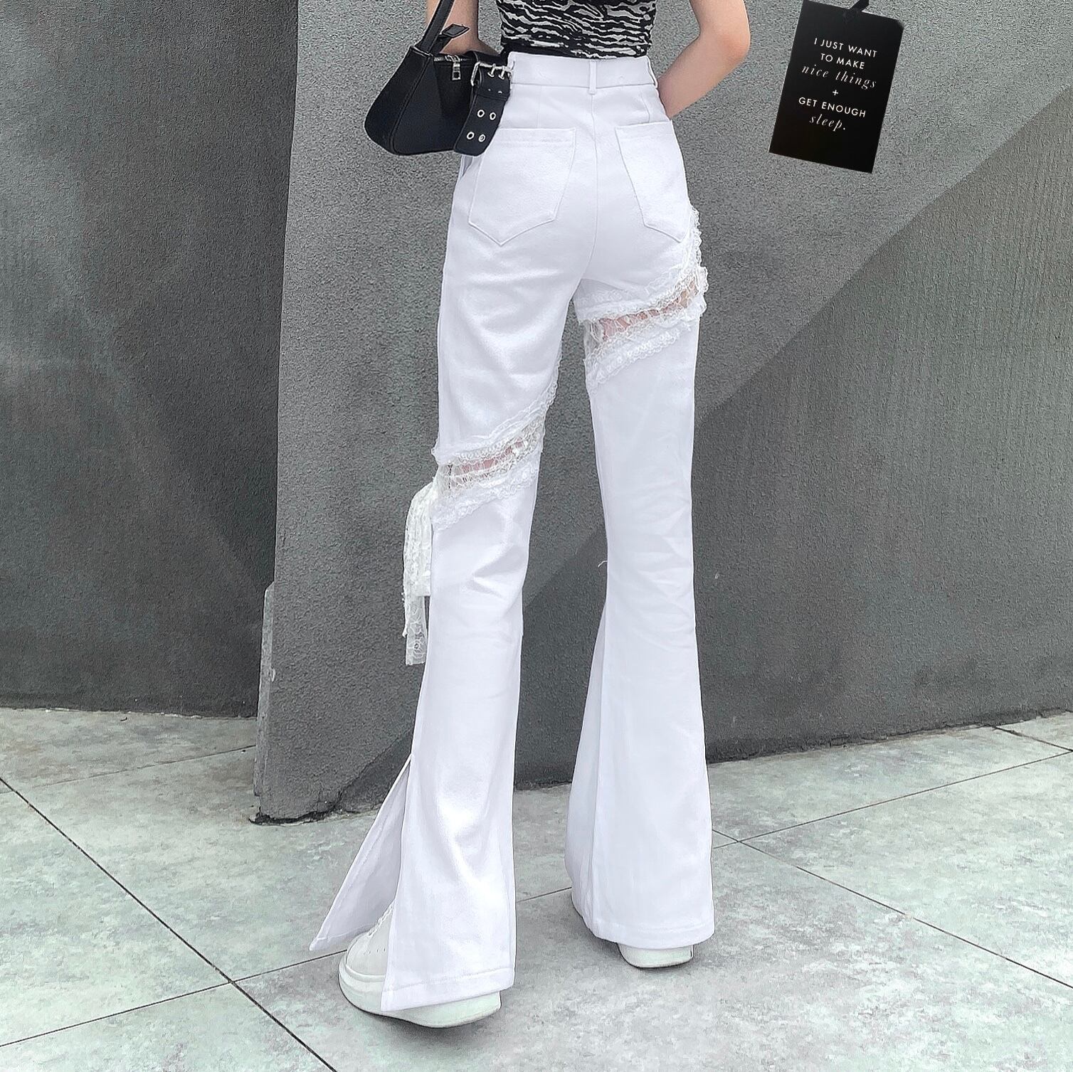 パンツ サマーレースルーズハイウェストウェストワイドレッグカジュアル ストリート 夏物 ワイドパンツ ステッチ Brother_is_Style69399119736