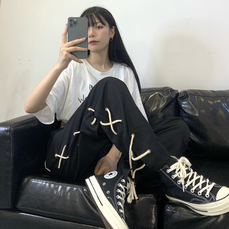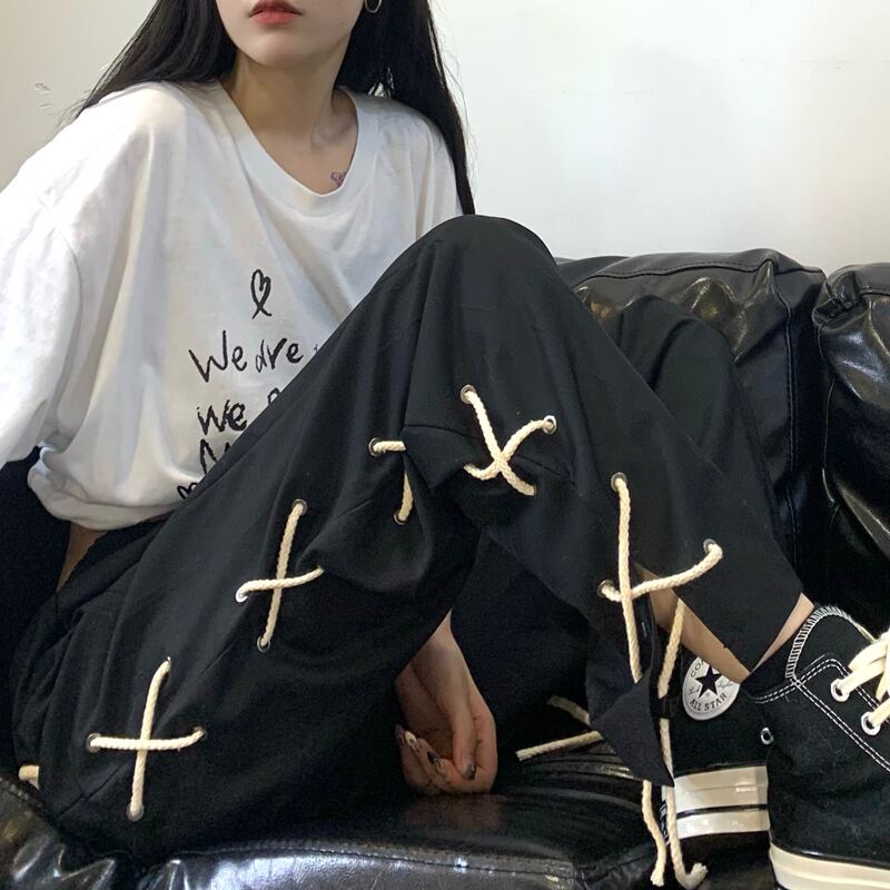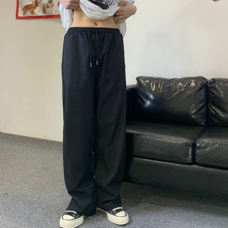 パンツ サマーギャザールーズブラックワイドレッグ薄手 ストリート 夏物 ワイドパンツ Brother_is_Style50088645158