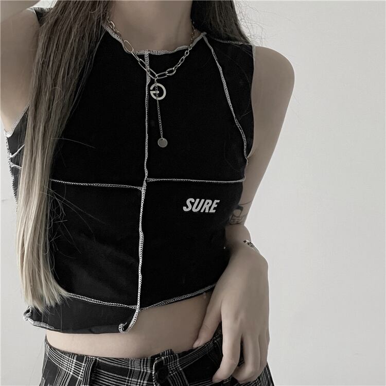 サマーダークトップス ルーズブラックショート 夏物 ステッチ Brother_is_Style76917880865