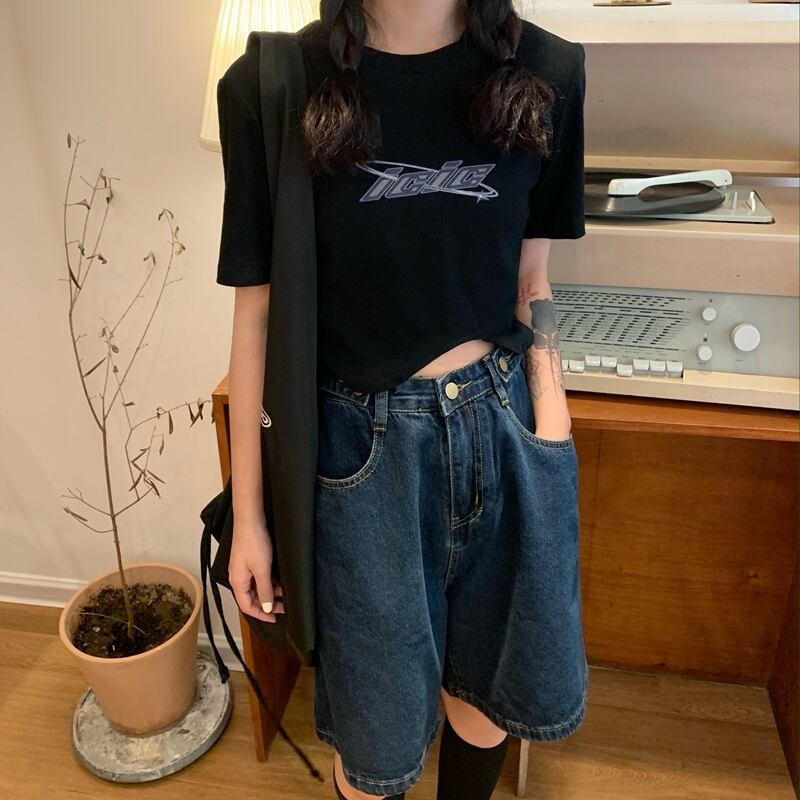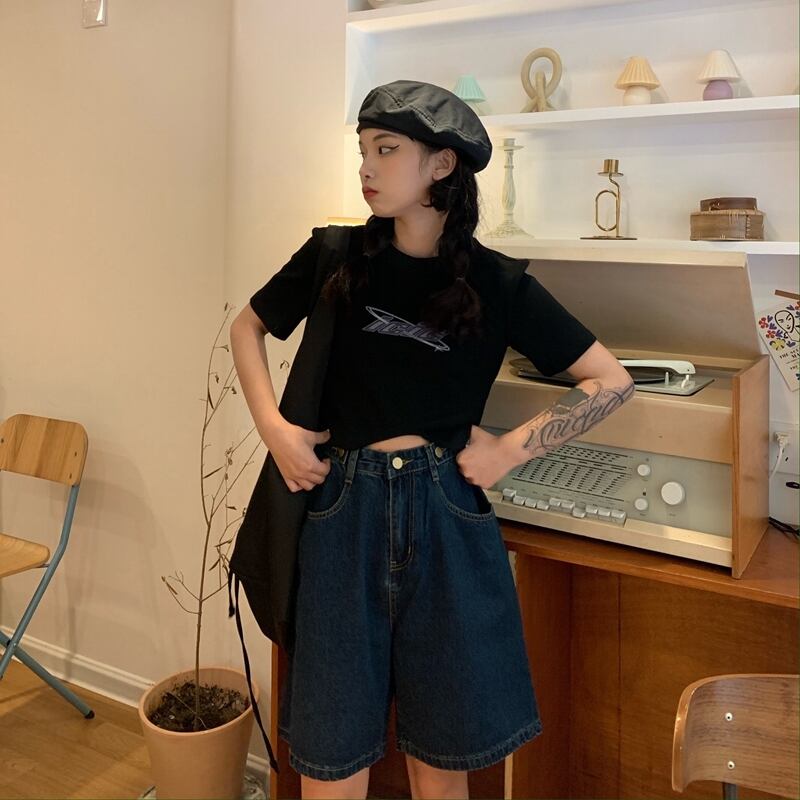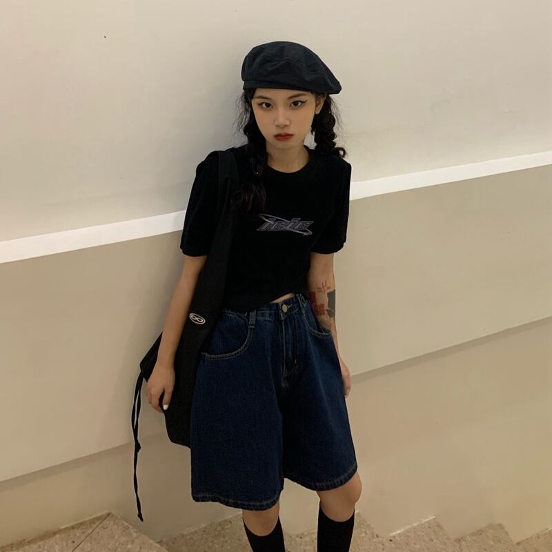 パンツ サマースタイルブルーショーツ ルーズハイウェストウェストジーンズ 夏物 ブルマー Brother_is_Style8817250098