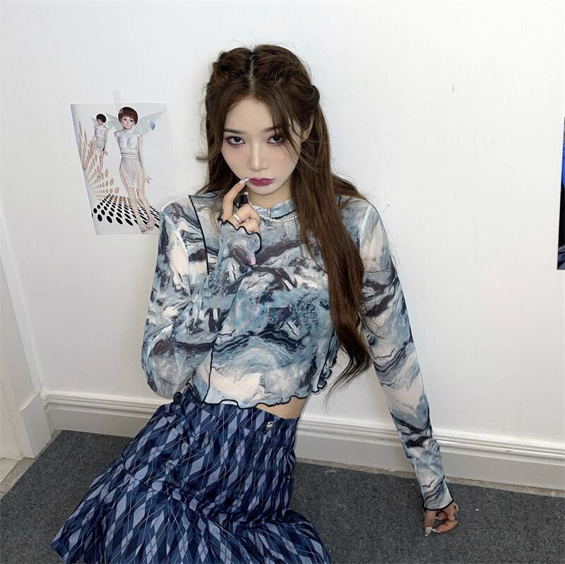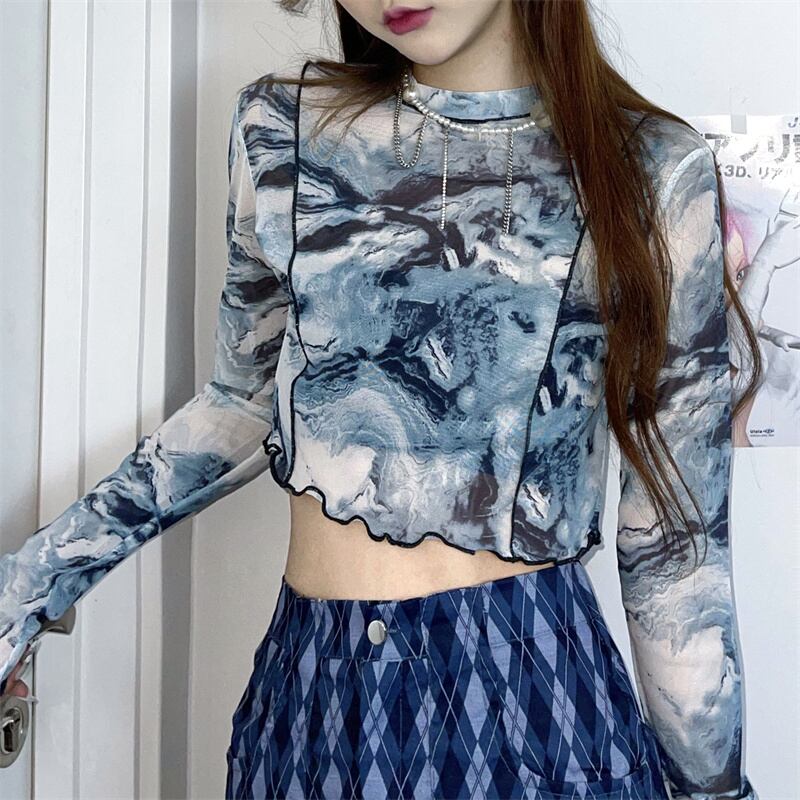 サマーメッシュショートシャツ トップス ルーズブルーTシャツ ロング ストリート 夏物 Brother_is_Style59956541501