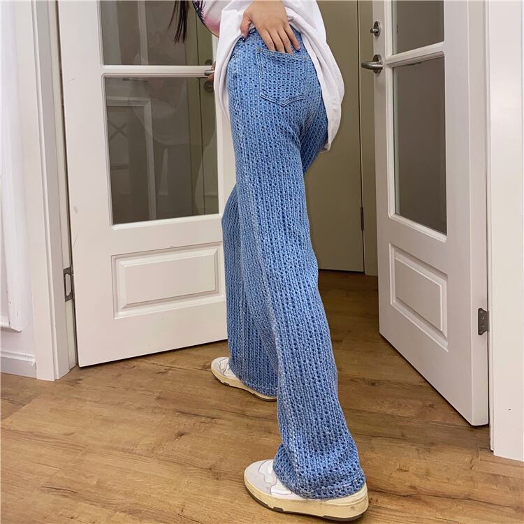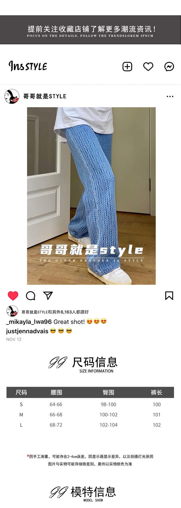 パンツ サマースタンダードブルールーズ薄手ワイドレッグハイウェストウェストジーンズ レトロ 夏物 ワイドパンツ Brother_is_Style18103374412