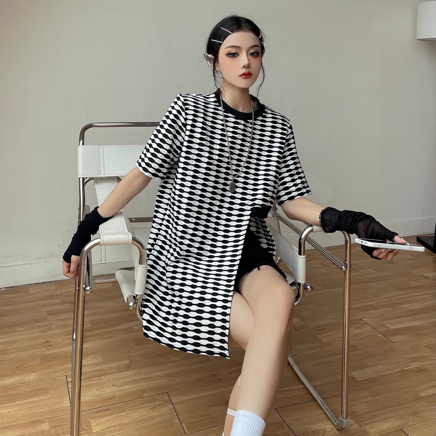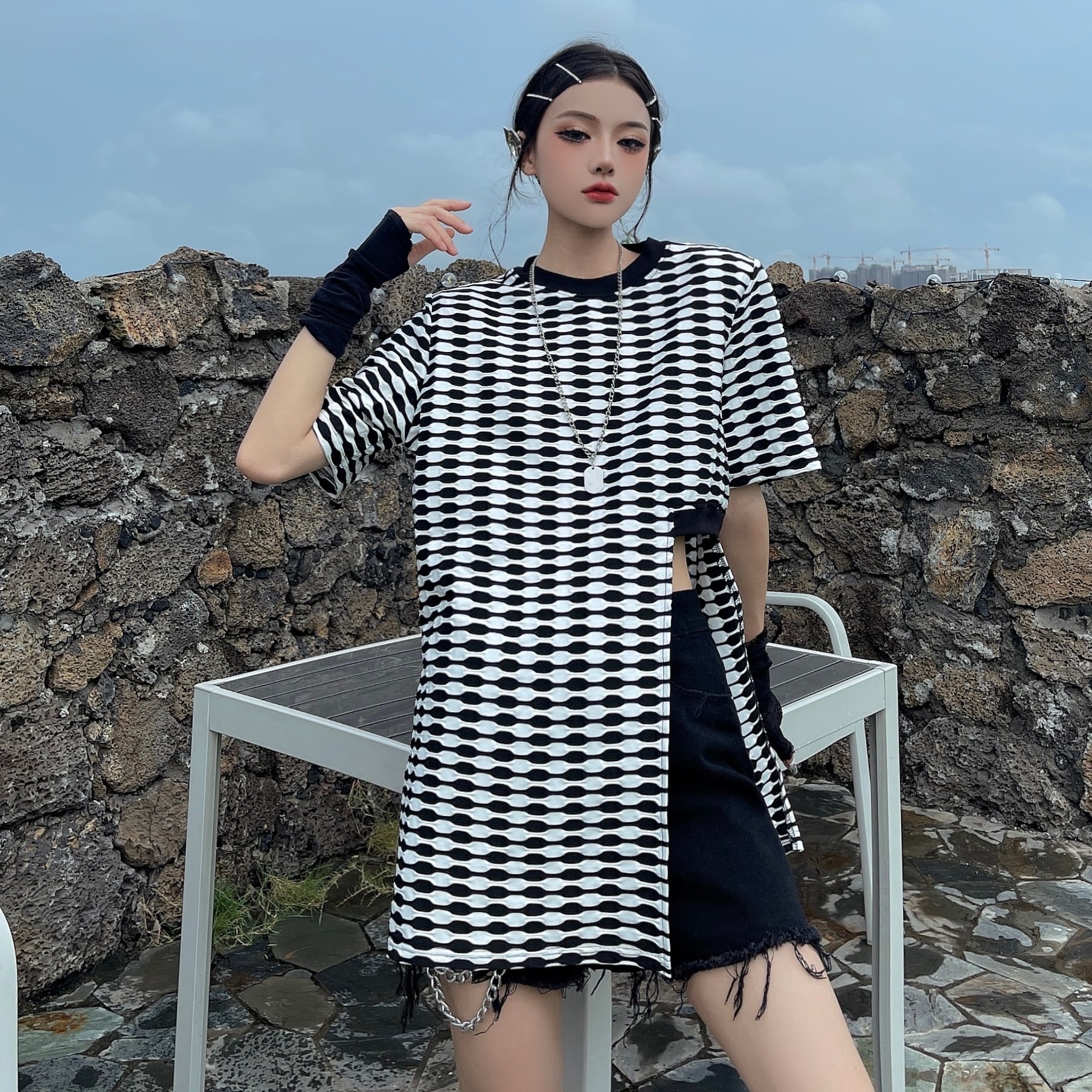 Tシャツ サマーストライプブラックルーズトップス 夏物 Brother_is_Style91462545055