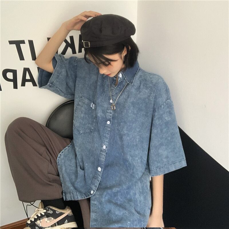 シャツ サマースタイルスタンダードブルールーズ薄手トップス レトロ 夏物 Brother_is_Style44994667104
