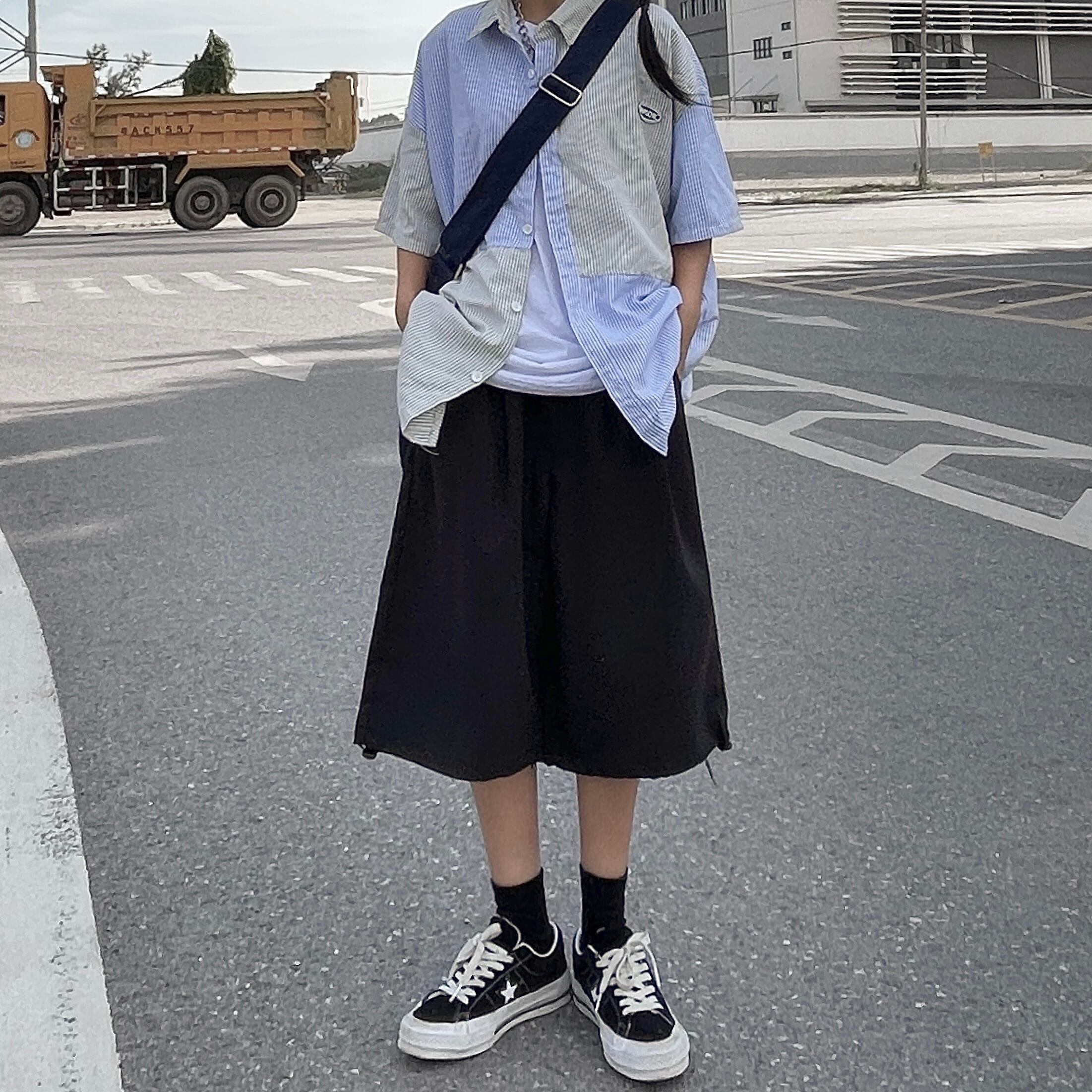 パンツ サマーブラックルーズハイウェストウェストワイドレッグショーツ カジュアル ストリート 夏物 ブルマー ワイドパンツ Brother_is_Style85447327306