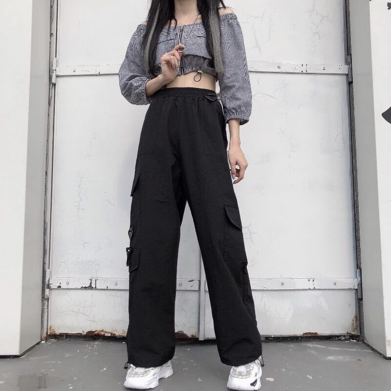 パンツ サマースタイルブラックハイウェストオーバーオール ルーズ薄手カジュアル 夏物 Brother_is_Style22332659296