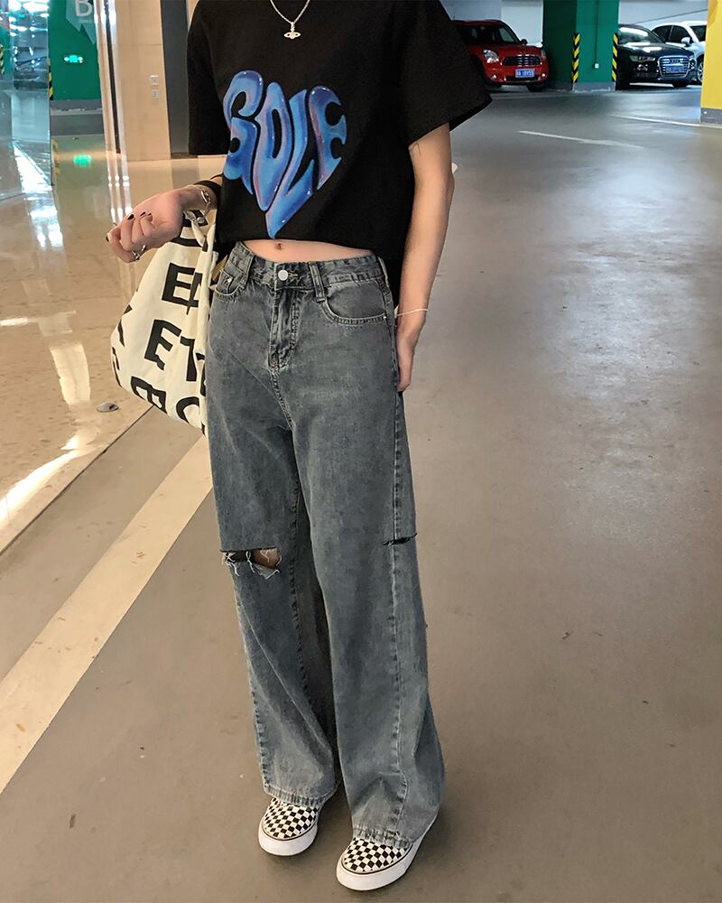 パンツ サマースタンダードルーズ薄手ワイドレッグウェストジーンズ レトロ 夏物 ワイドパンツ Brother_is_Style86582979231