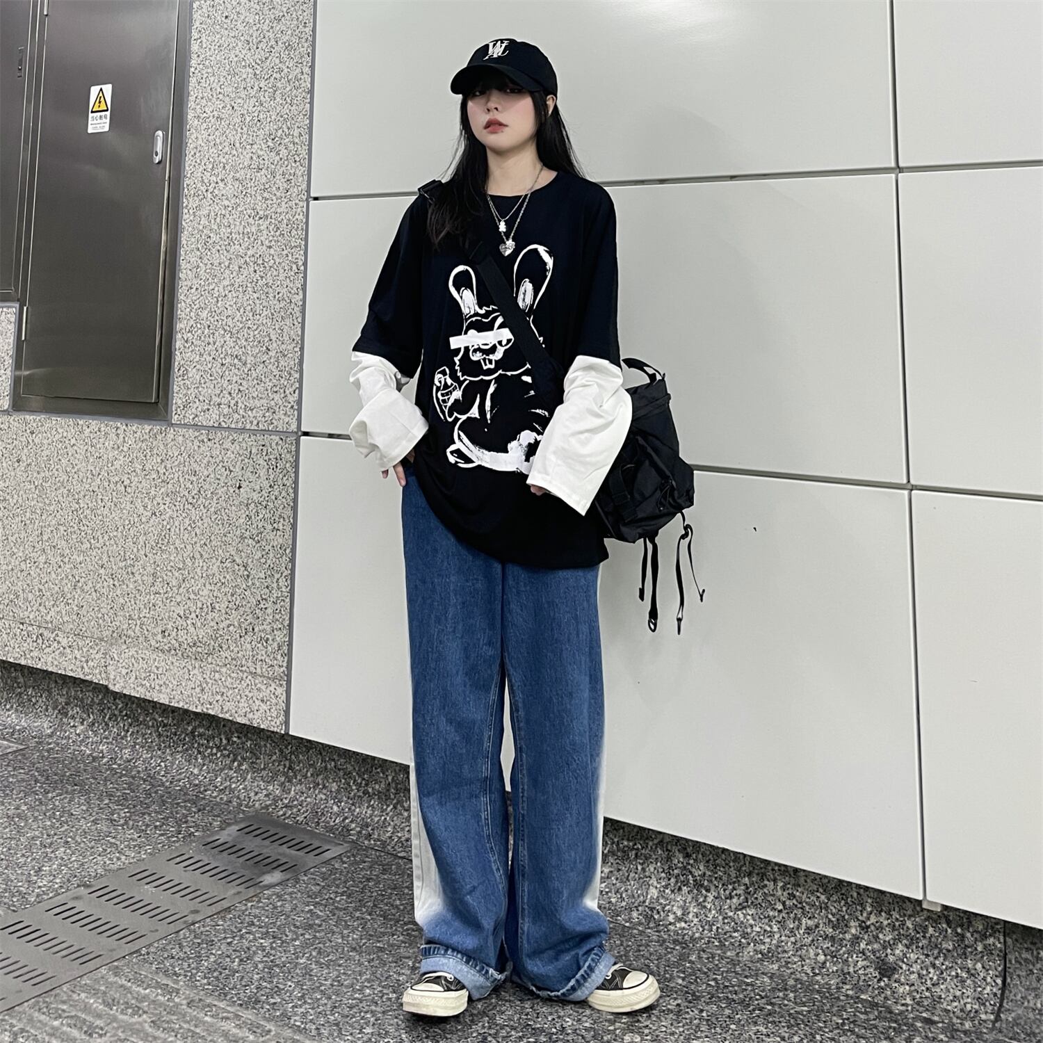 サマースタンダードトップス ルーズブラックTシャツ ロング レトロ 夏物 Brother_is_Style9046722253