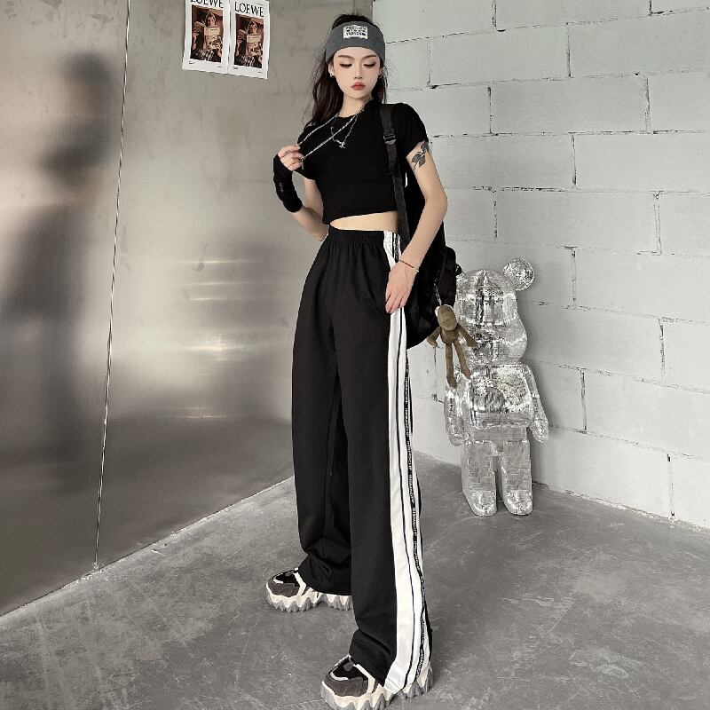 ブラックパンツ サマースタンダードルーズ薄手カジュアル レトロ 夏物 ステッチ Brother_is_Style79762889869