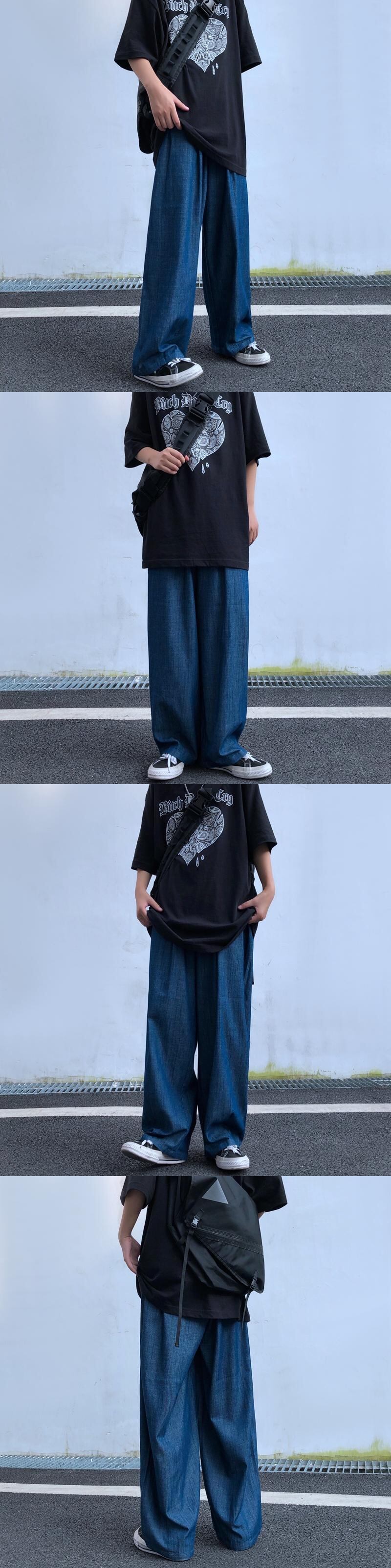 パンツ サマースタンダードルーズ薄手ワイドレッグハイウェストウェストジーンズ レトロ 夏物 ワイドパンツ Brother_is_Style21697424466