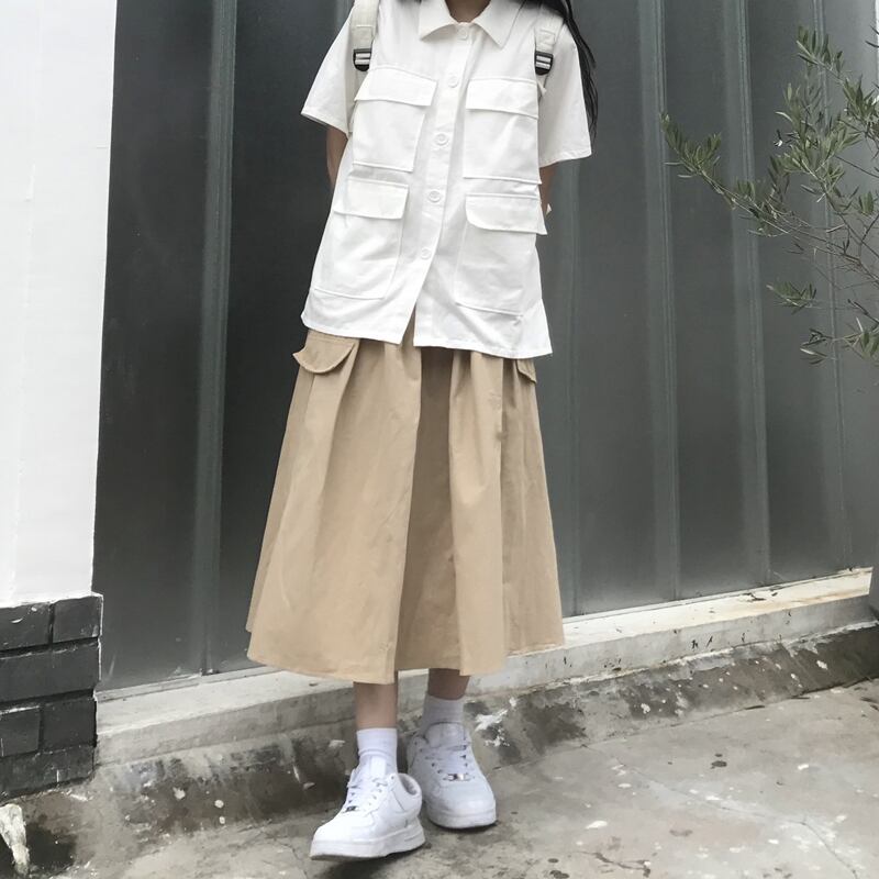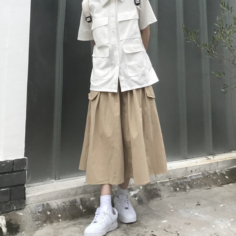 スカート サマーAラインハイウェストウェストカーキ 夏物 Brother_is_Style34540424318