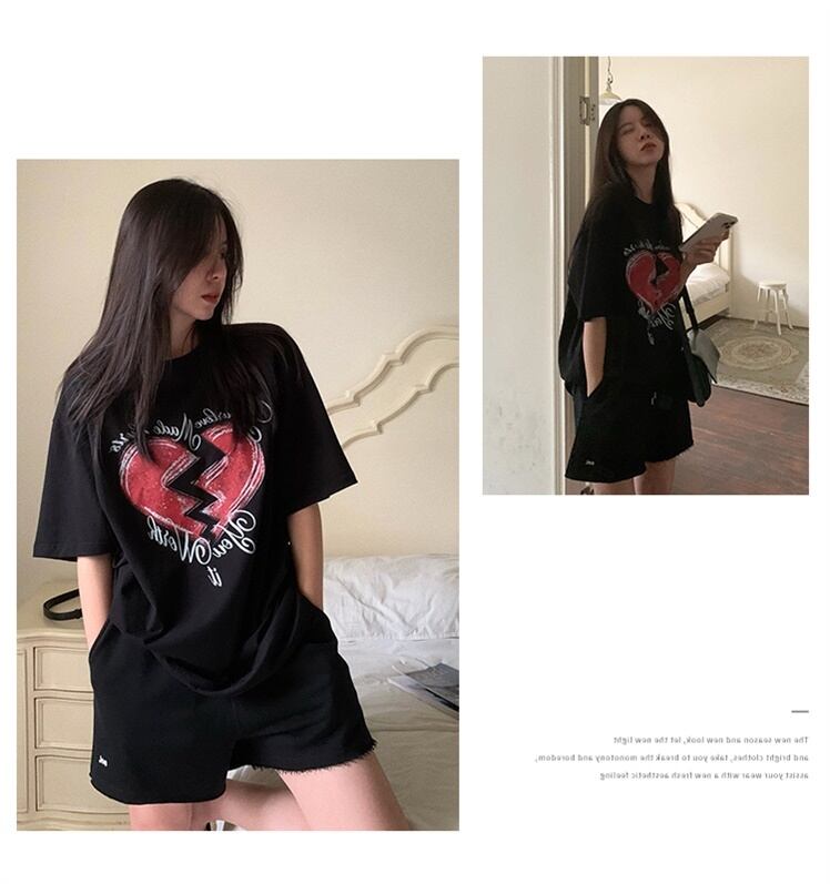 サマーブラックTシャツ ルーズブラウス レディース 夏物 Brother_is_Style61549723462