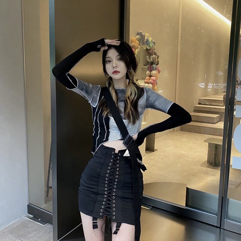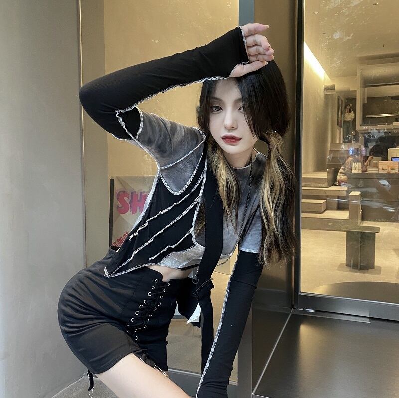 Tシャツ サマースリムショートトップス ロング 夏物 ステッチ Brother_is_Style50174533246