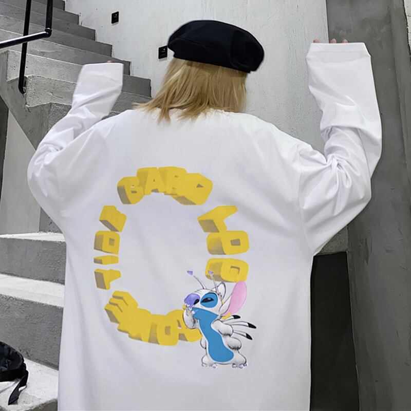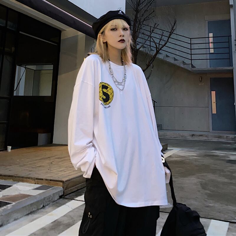 スプリングオータムスタイルスタンダードトップス ホワイトルーズTシャツ ロング レトロ 春物 秋物 Brother_is_Style73337267321