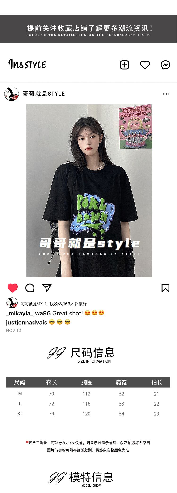 サマースタンダードトップス ルーズブラックTシャツ レトロ 夏物 Brother_is_Style11227102063