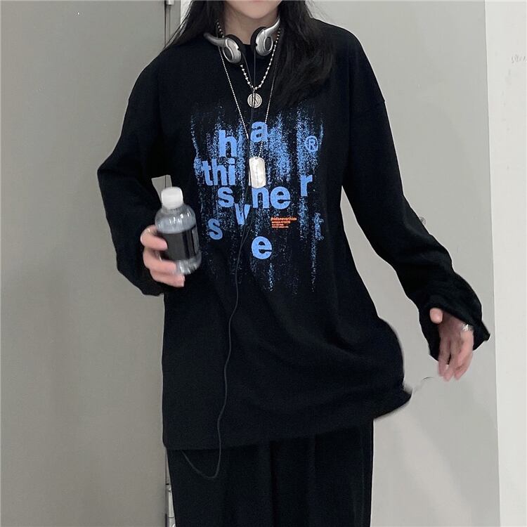サマーシャツ ルーズブラックTシャツ ロング ストリート 夏物 ヨーロピアン Brother_is_Style52399852274