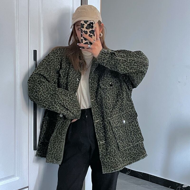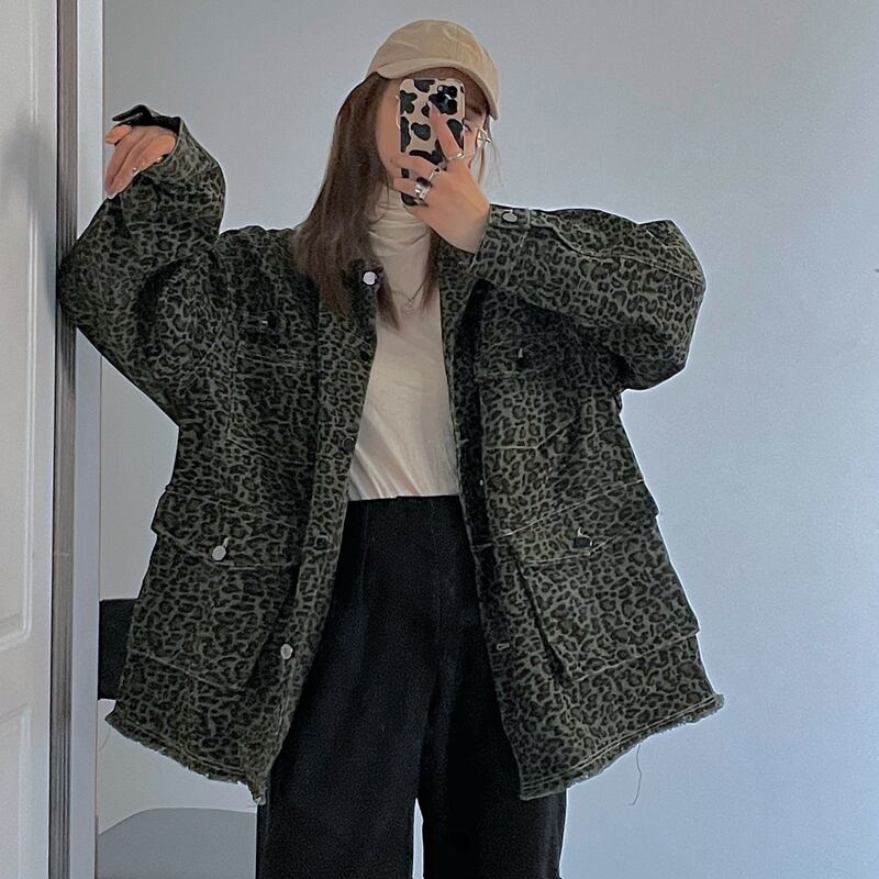 スプリングスタンダードレオパードプリント柄ジャケット ルーズ ロング レトロ 春物 Brother_is_Style89653294239