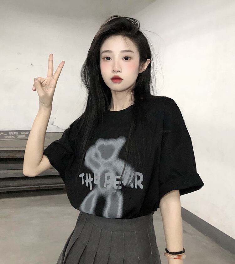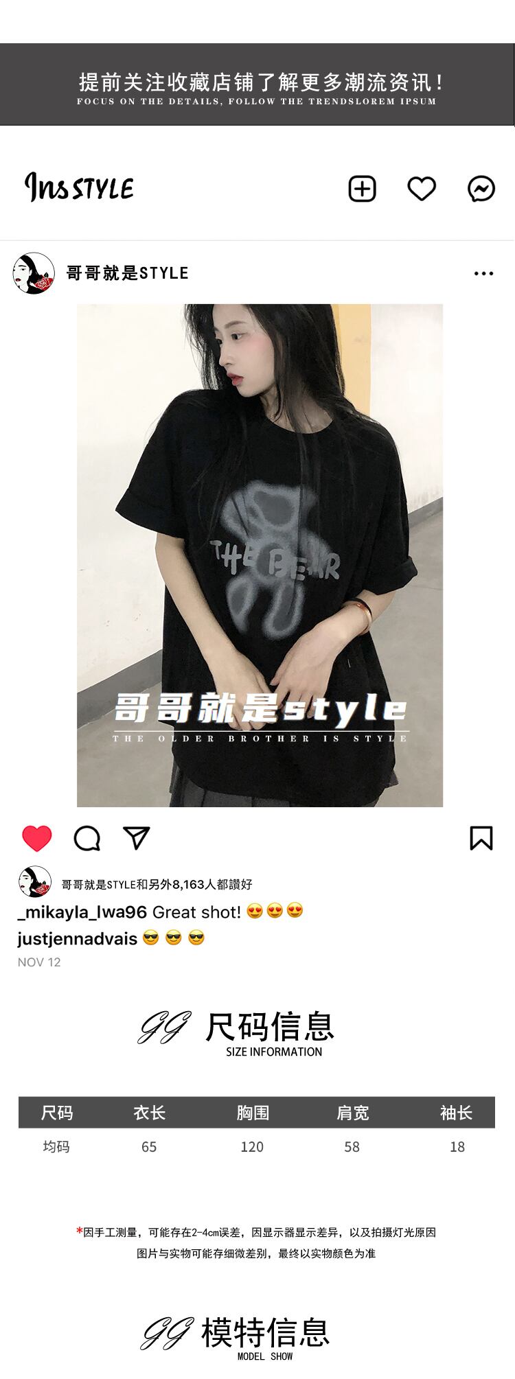サマーダークトップス ルーズブラックTシャツ 夏物 Brother_is_Style76869861720
