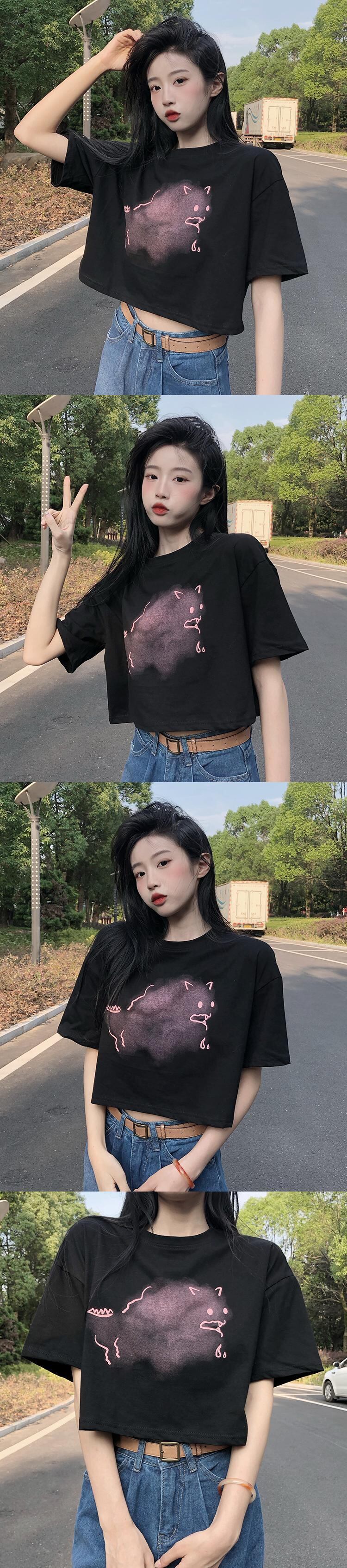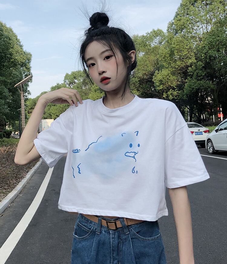 色:白い雲の落書きショートT,黒い雲の落書きショートT