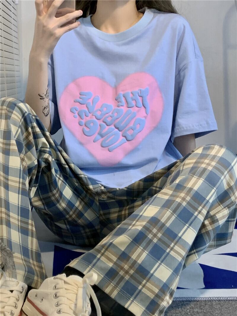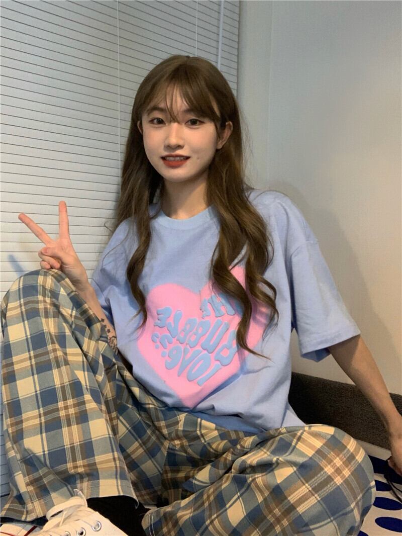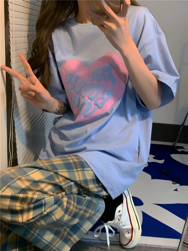 サマースタンダードブルートップス ルーズTシャツ レトロ 大人ガーリー スウィート キュート カジュアル 夏物 Brother_is_Style73530481716