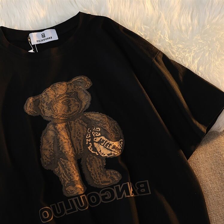 サマーTシャツ ルーズブラックスタンダードトップス レトロ 夏物 Brother_is_Style17991219981