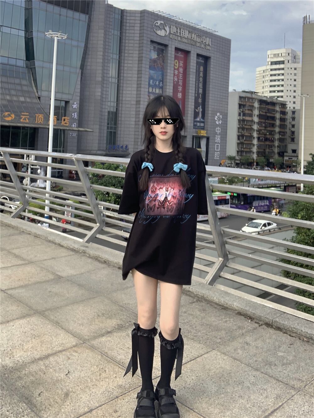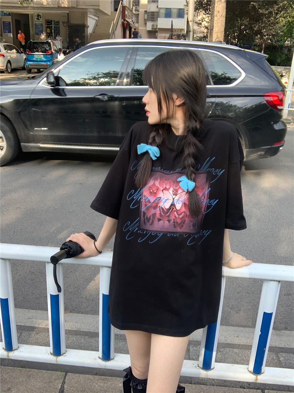 Tシャツ サマーButterflyデザイン プリント柄ルーズブラックトップス 大人ガーリー スウィート キュート カジュアル 夏物 Brother_is_Style32406244938