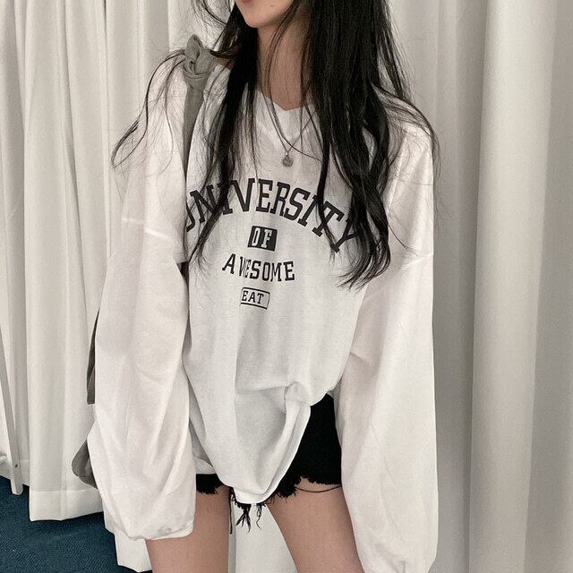 サマースタンダードプリント薄手トップス ルーズホワイトTシャツ ロング レトロ 夏物 ヨーロピアン Brother_is_Style4524970057