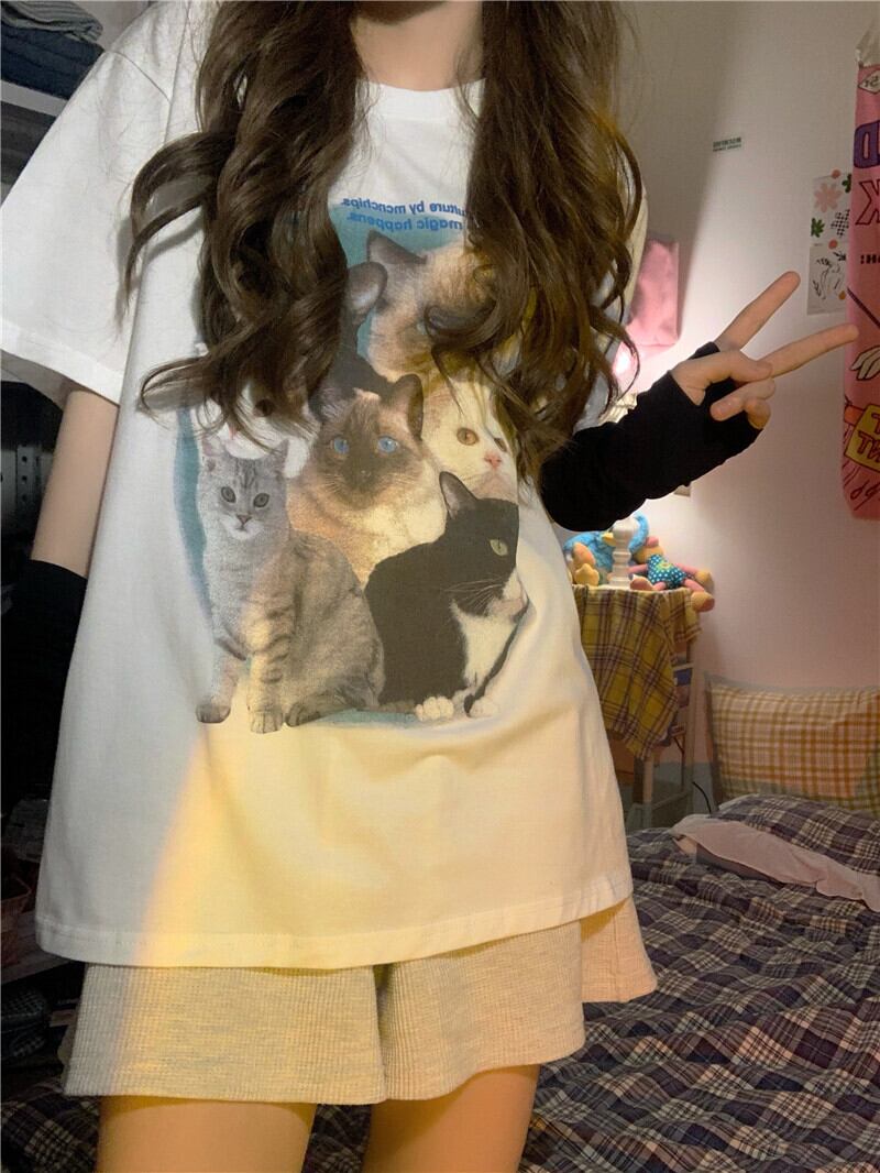 サマースタンダードホワイトシャツ ルーズTシャツ レトロ 大人ガーリー スウィート キュート カジュアル 夏物 Brother_is_Style62741455451
