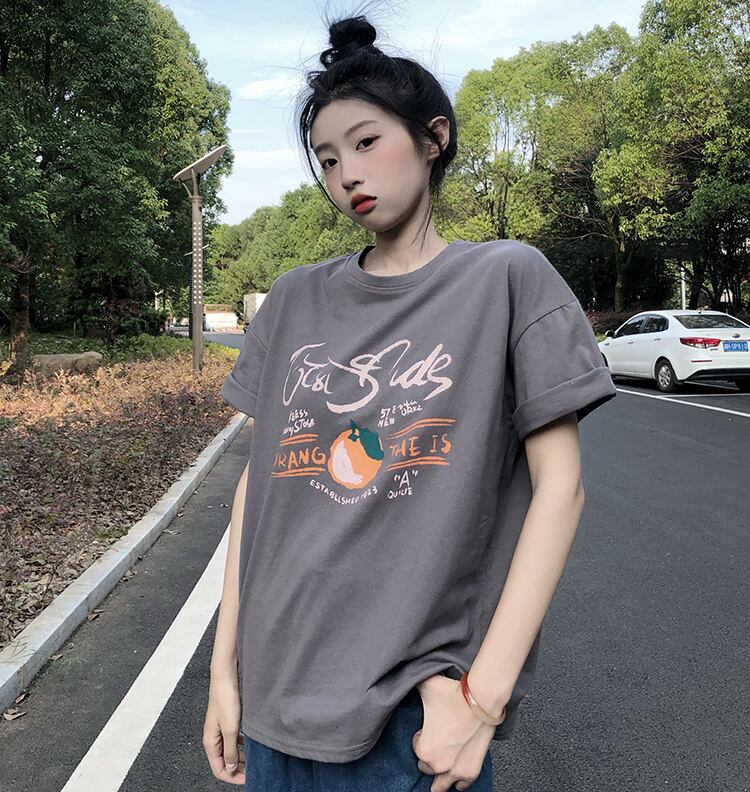 サマースタンダードグレーTシャツ ルーズトップス コットン レトロ 夏物 ピュア Brother_is_Style76094651705