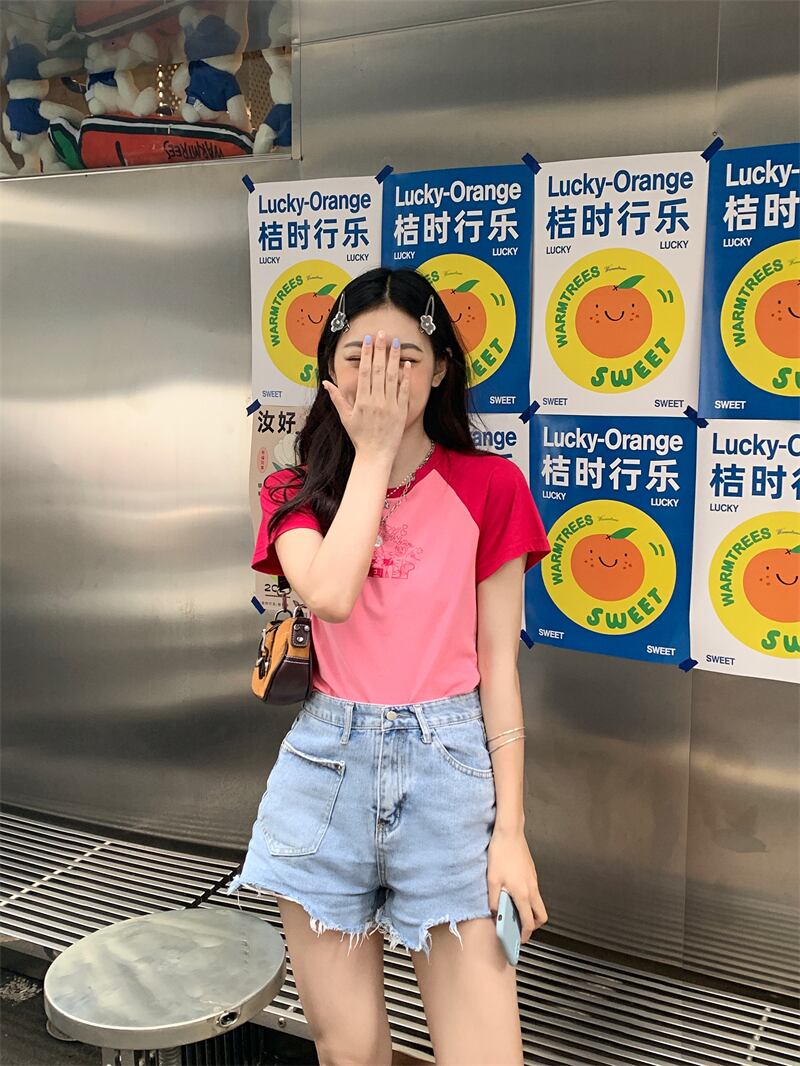 サマースタンダードショートトップス ルーズTシャツ ピンク レトロ 大人ガーリー スウィート キュート カジュアル 夏物 Brother_is_Style38446269243