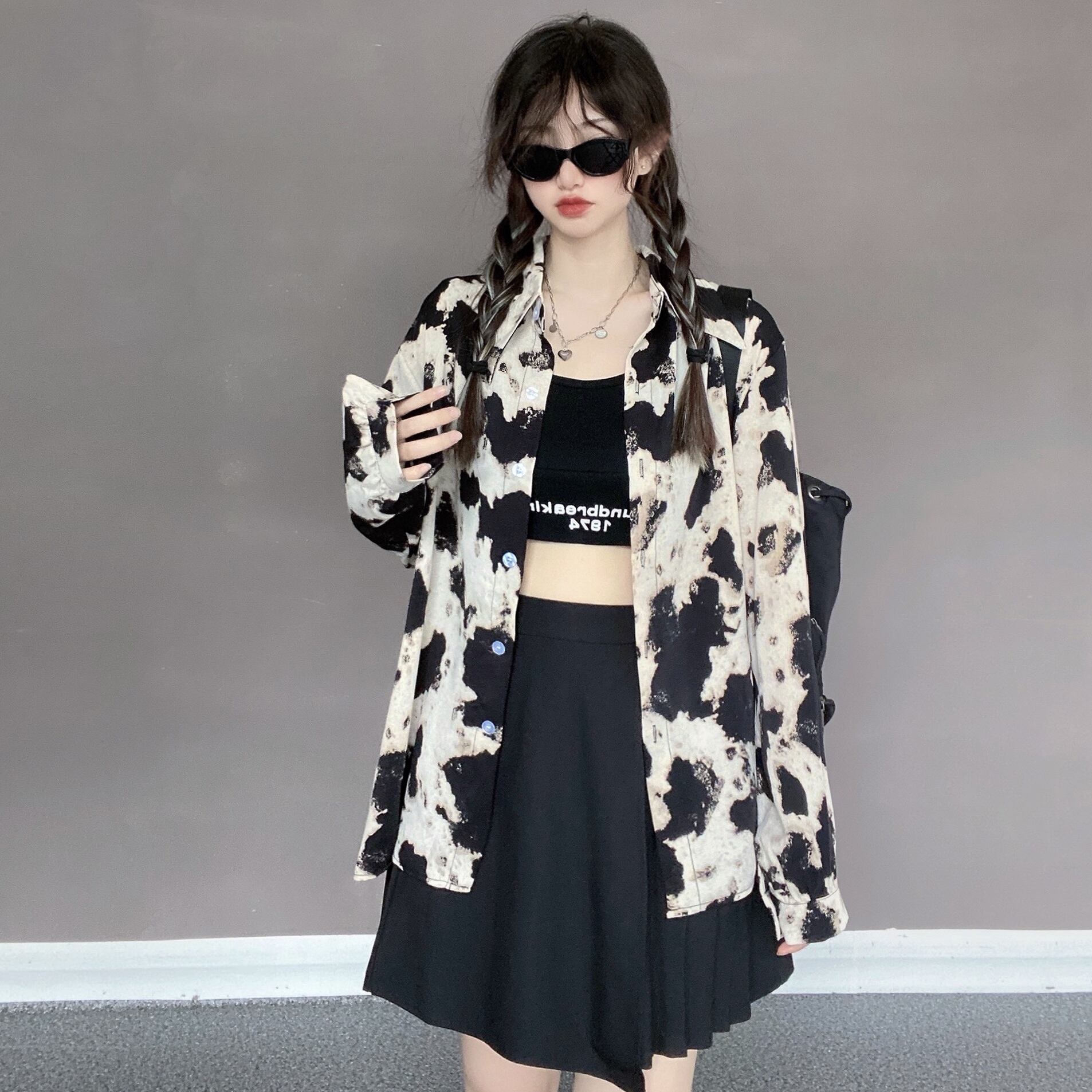 サマースタンダードパターンシャツ ジャケット ルーズトップス ロング レトロ 夏物 Brother_is_Style97182029930