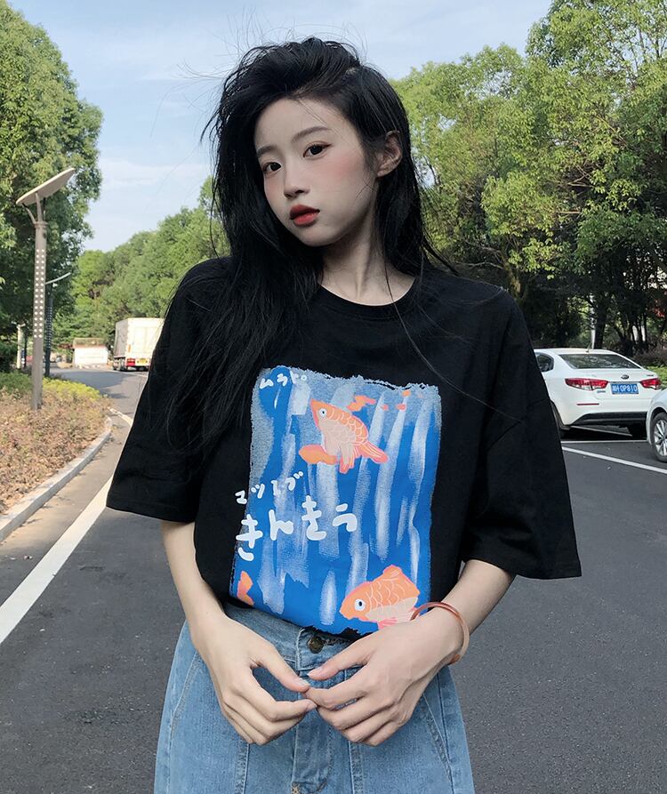 色:白い小さな鯉のTシャツ,ブラックリトルカープTシャツ