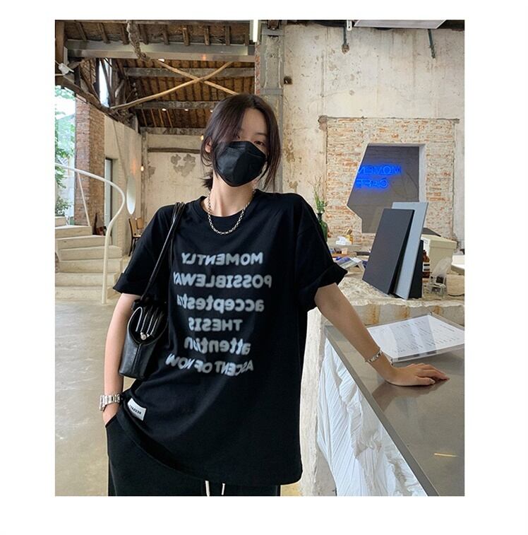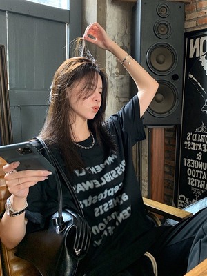 サマーTシャツ ルーズスタイルブラックトップス かわいい 夏物 Brother_is_Style79422848373