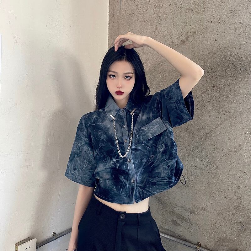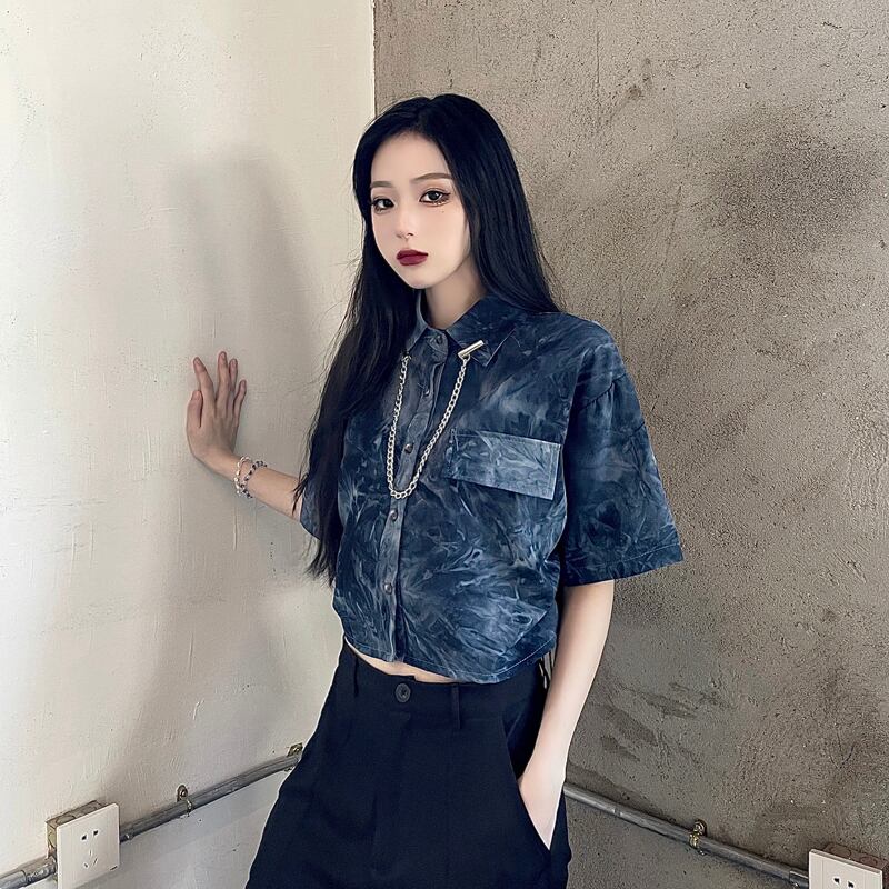 ショートシャツ レディースサマースタンダードルーズブルートップス レトロ 夏物 Brother_is_Style29408734487