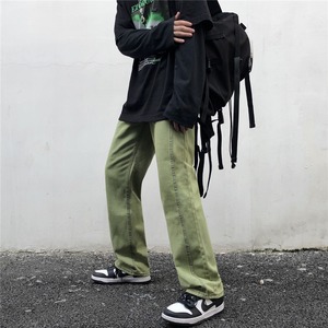 パンツ サマースタンダードグリーンルーズ薄手ワイドレッグハイウェストウェストジーンズ レトロ 夏物 ワイドパンツ Brother_is_Style24921691279