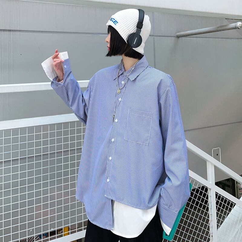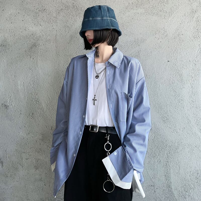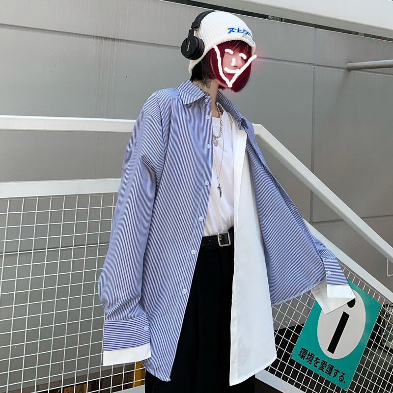 シャツ サマージャケット ルーズストライプトップス ロング 夏物 ステッチ Brother_is_Style66281943251