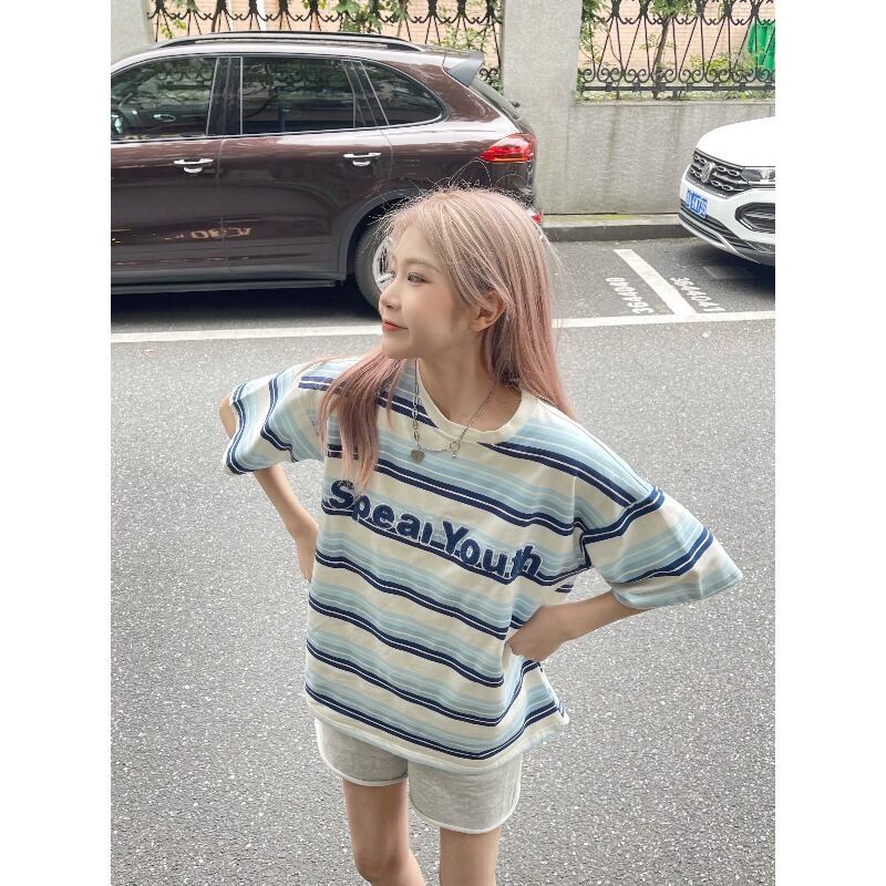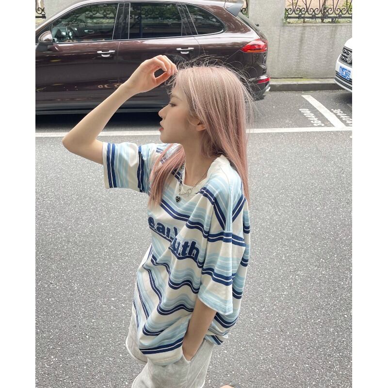 サマースタンダードストライプトップス ルーズラウンドネックTシャツ レトロ 夏物 Oネック Brother_is_Style20950321431