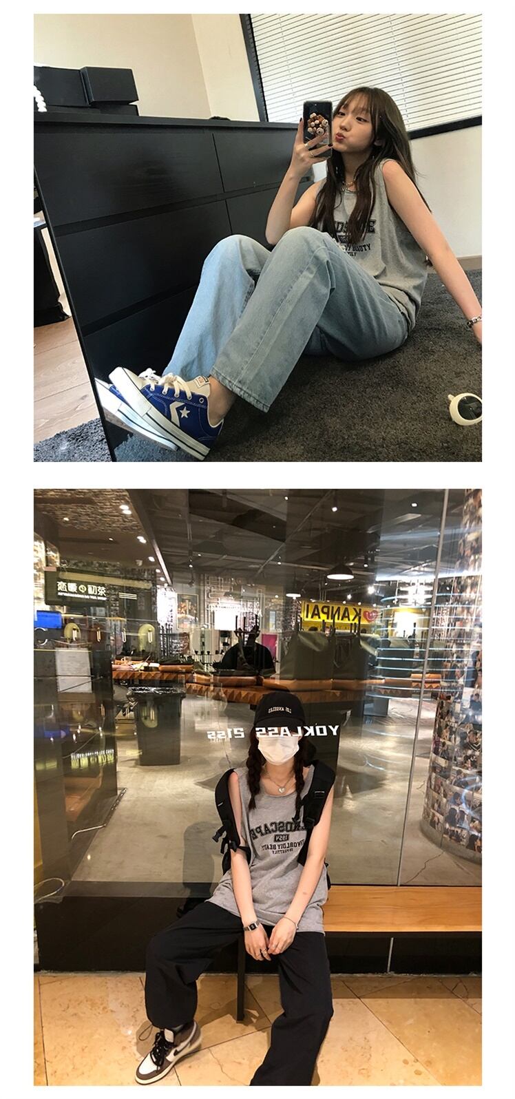 グレーサマールーズスタンダードノースリーブトップス レトロ 夏物 Brother_is_Style57968417920