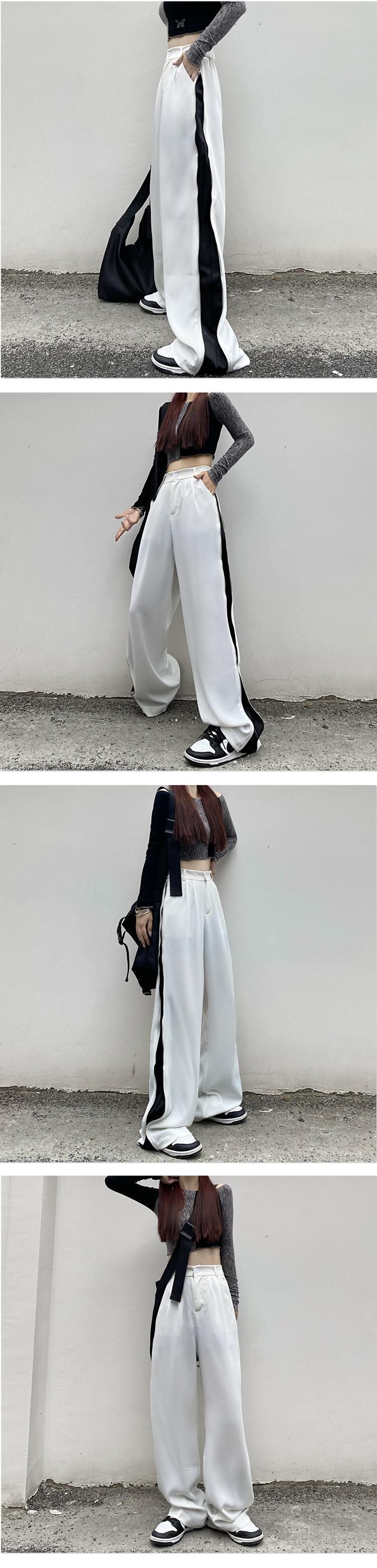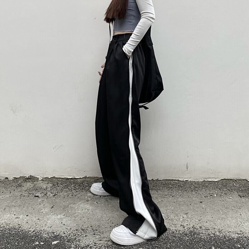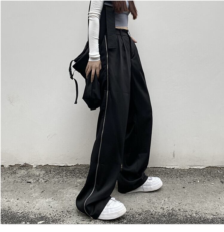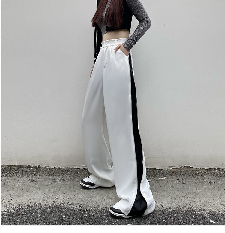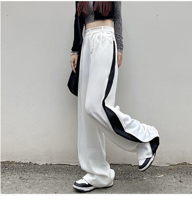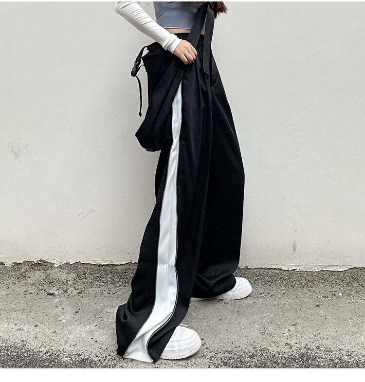 パンツ サマースタンダード薄手ルーズハイウェストウェストブラックカジュアル レトロ 夏物 ステッチ Brother_is_Style91989228745