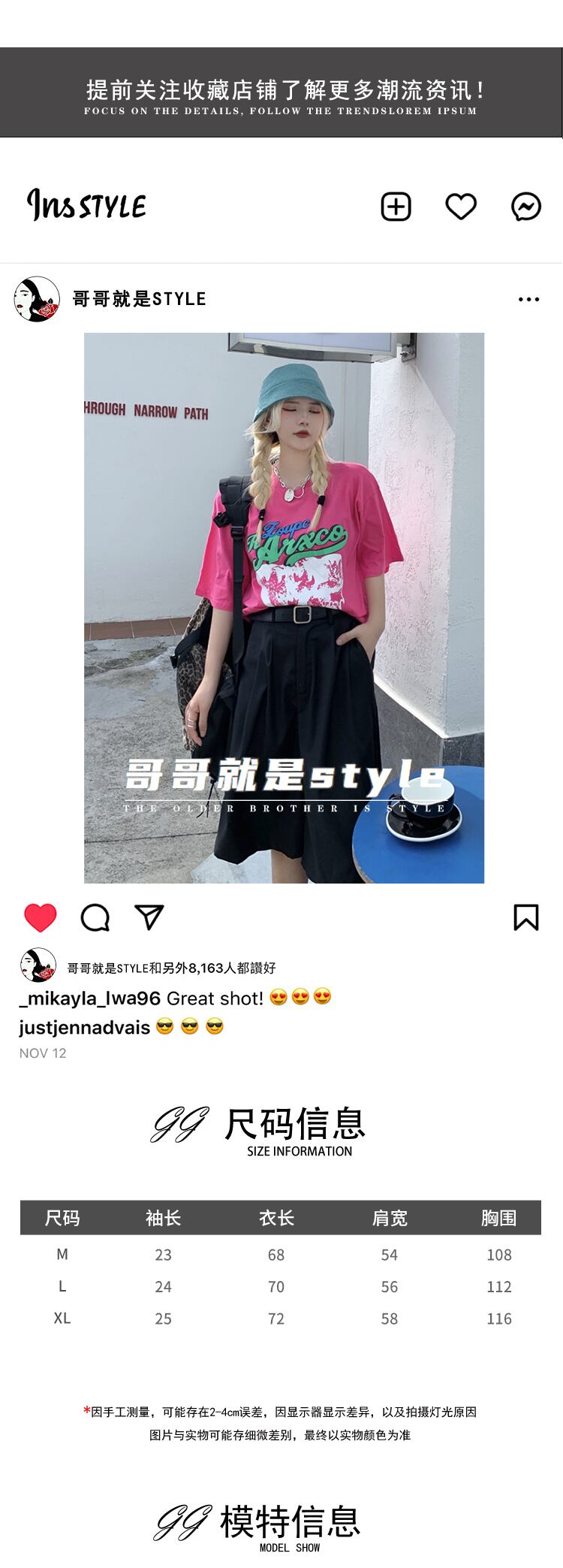 サマープリントトップス ルーズラウンドネックTシャツ 夏物 Oネック Brother_is_Style94251297594