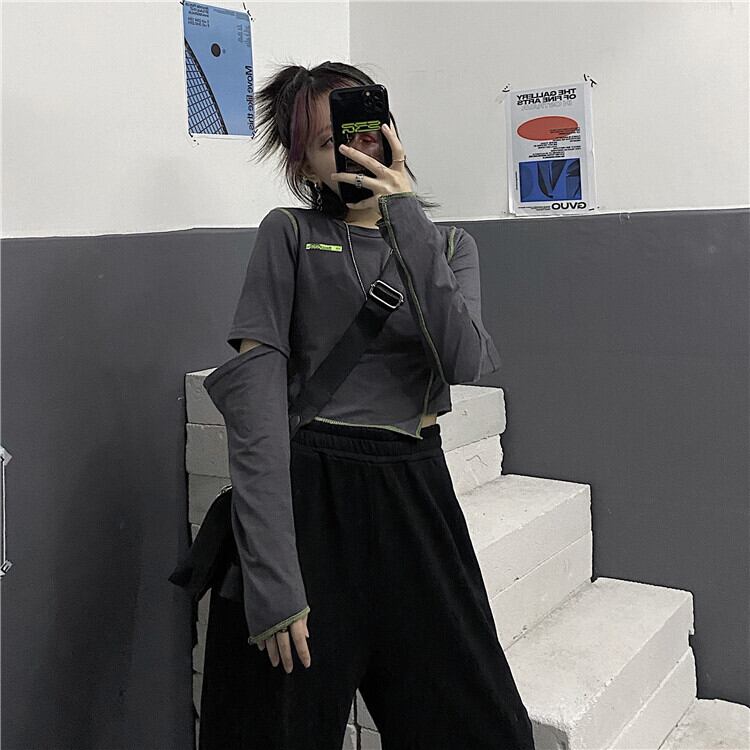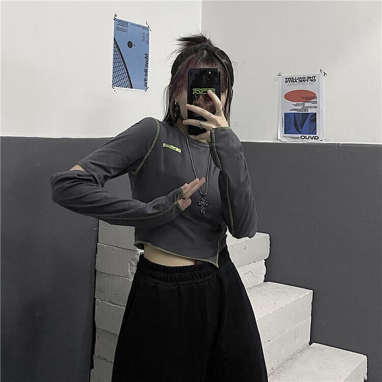スプリングオータムTシャツ スリムショートトップス ロング 春物 秋物 ステッチ Brother_is_Style71895952970